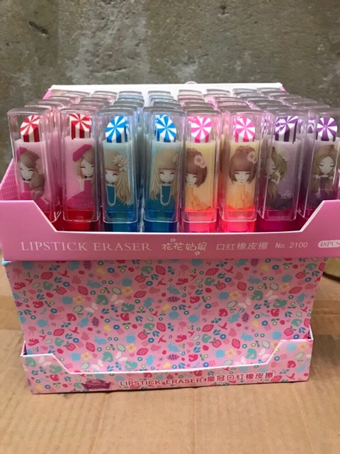 Nguyên 1 hộp tẩy son vặn hình kitty , hình công chúa đẹp lung linh gồm có 48 bút tẩy