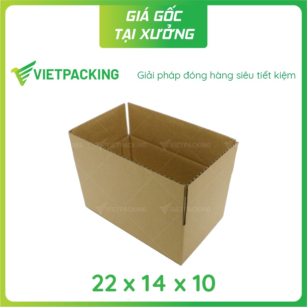 25 hộp carton size 22x14x10 đc xưởng bao bì Vietpacking sản xuất với giấy 2 mặt Nâu, 1 Xeo hoặc giấy carton trắng. Định lượng chuẩn 125-115. Sóng E, B, C. Giấy cứng, hộp đẹp vuông vức. Nguyên liệu giấy được nhập khẩu (Thái Lan, Đài Loan, Malaysia) hoặc chọn nơi cung cấp tốt nhất trong nước như Giấy Sài Gòn, Chánh Dương...