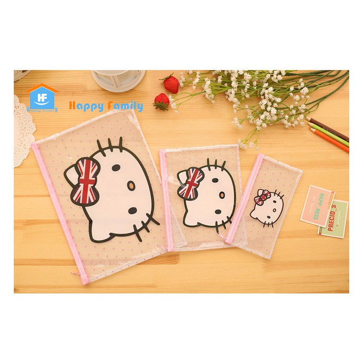 【Có bỏ sỉ 】Combo 3 size túi đựng hồ sơ dây kéo Kitty cao cấp