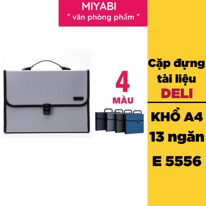Giới thiệu Cặp tài liệu A4 13 ngăn Deli, 4 màu xanh dương, xanh lá, xám , đen - 1 chiếc - E5556- dùng trong văn phòng