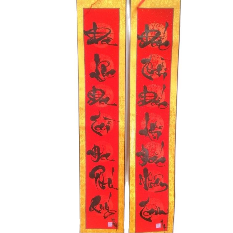 Cạp đối Biểu lụa thư pháp viết tay, trang trí tết