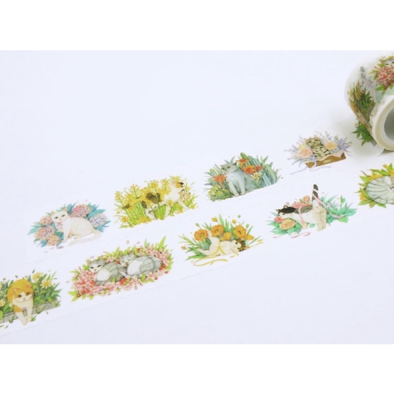 (Chiết theo chu kỳ) Băng dính washi tape hoạ tiết mèo và cây cỏ siêu đáng yêu