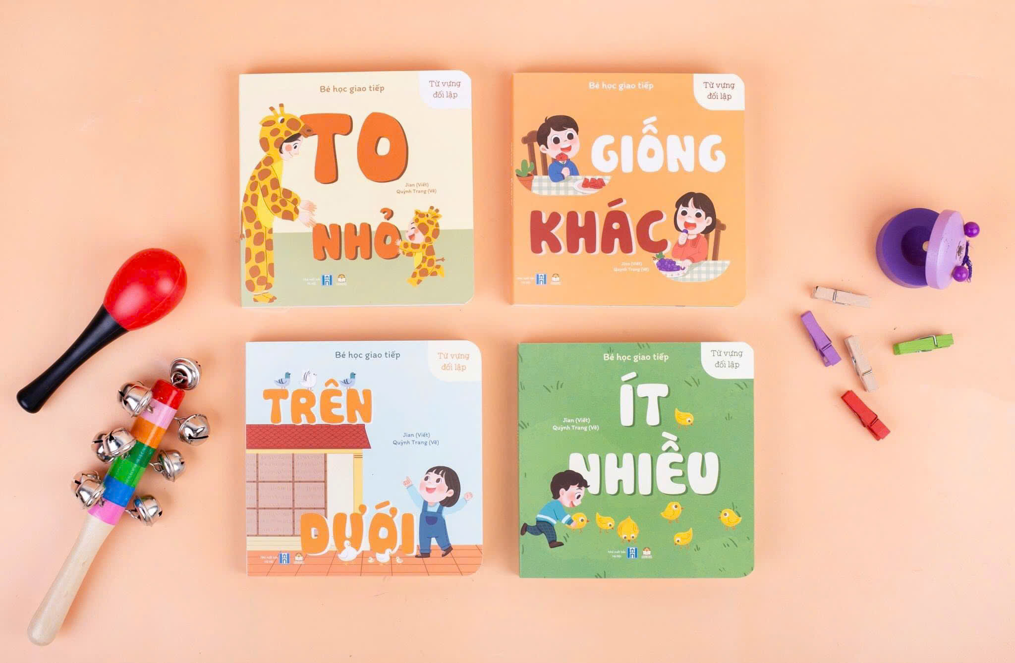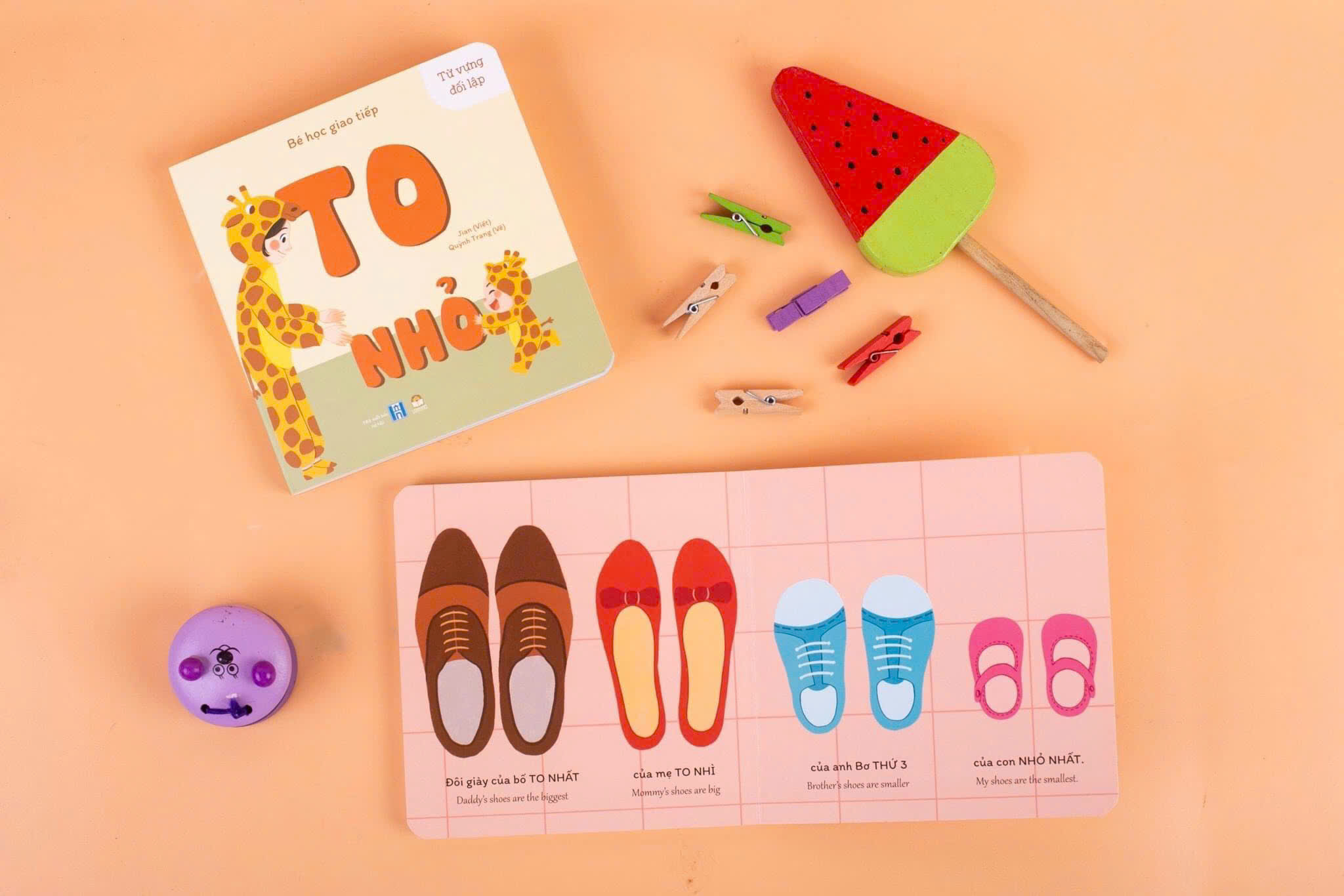 Tất cả đều có trong bộ sách BÉ HỌC GIAO TIẾP 2 gồm 4 cuốn: To - Nhỏ, Giống - Khác, Ít - Nhiều , Trên - Dưới.