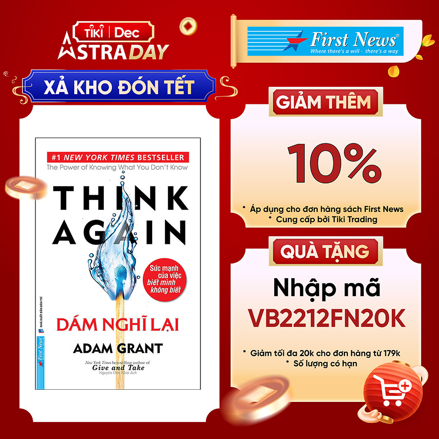 Trong một thế giới đầy biến động, lối tư duy cố hữu và hiểu biết ăn sâu của chúng ta có thể trở thành lời nguyền án ngữ mọi sự tiến bộ của chính mình. Hơn thế nữa, bạn dễ đi thụt lùi vì “thiếu năng lực siêu nhận thức, tức là khả năng tư duy về cách tư duy của chính mình”, tác giả Adam nhận định. “Dám nghĩ lại” (Think Again) là cuốn sách sẽ hướng dẫn chúng ta từ bỏ việc bám chấp vào những hiểu biết của bản thân để tư duy cởi mở và linh hoạt hơn.