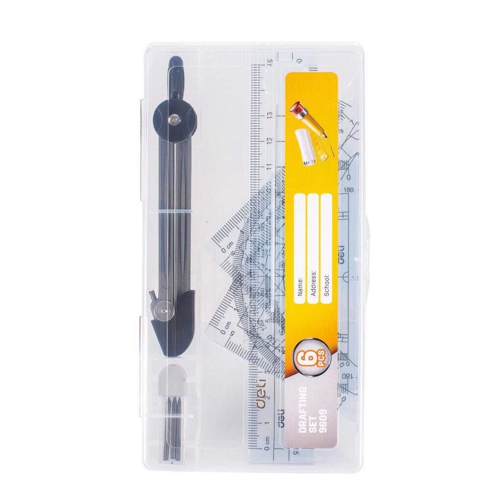 Bộ Dụng Cụ Compa, Eke Học Sinh Deli 9609 thiết kế nhỏ gọn, đầy đủ để phục vụ việc học mà không cần phải mua lẻ.