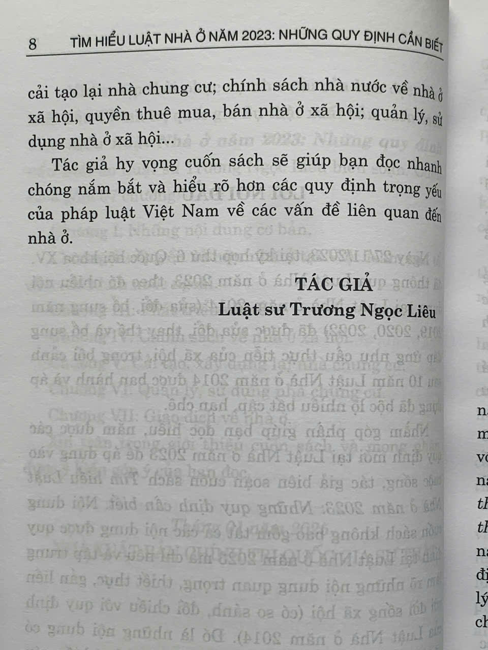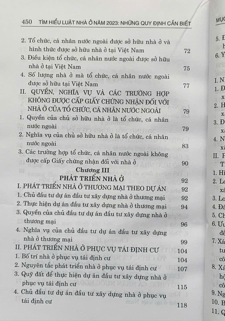 Nhằm góp phần giúp bạn đọc hiểu, nắm được các quy định mới tại Luật Nhà ở năm 2023 để áp dụng vào cuộc sống, tác giả biên soạn cuốn sách Tìm hiểu Luật Nhà ở năm 2023: Những quy định cần biết. Nội dung cuốn sách không bao gồm tất cả các nội dung được quy định tại Luật Nhà ở năm 2023 mà chỉ nêu và tập trung làm rõ những nội dung quan trọng, thiết thực, gắn liền với đời sống xã hội (có so sánh, đối chiếu với quy định của Luật Nhà ở năm 2014). Đó là những nội dung có nhiều quan điểm tranh luận gay gắt khi lấy ý kiến góp ý dự thảo Luật Nhà ở như: Vấn đề quyền sở hữu nhà ở của người Việt Nam định cư ở nước ngoài; vấn đề thời hạn sở hữu nhà chung cư, phần sở hữu chung, riêng, bãi đậu xe, quản lý, vận hành nhà chung cư, việc xây dựng, cải tạo lại nhà chung cư; chính sách nhà nước về nhà ở xã hội, quyền thuê mua, bán nhà ở xã hội; quản lý, sử dụng nhà ở xã hội...