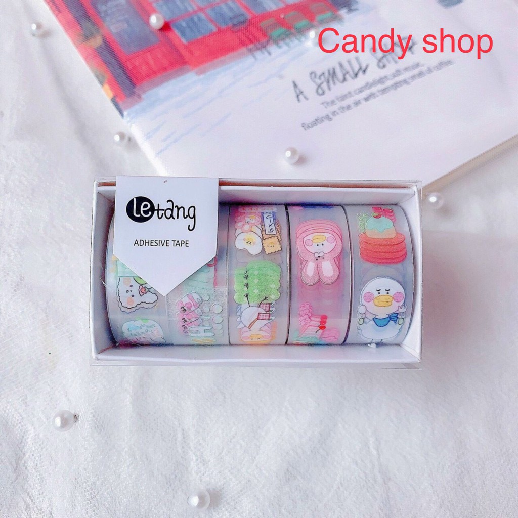 Văn Phòng Phẩm > Thiết Bị Trường Học > Dây & Băng Keo Dán || Hộp 5 Cuộn Washi Nền Trắng