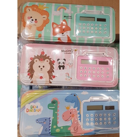 Hộp bút sắt kèm máy tính B294-26 - giao màu ngẫu nhiên