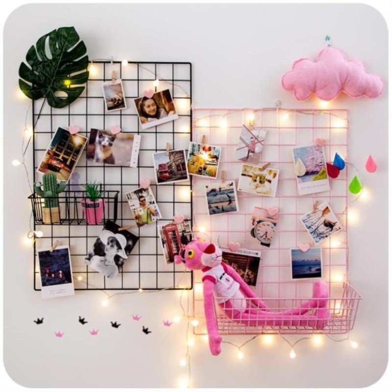 TẶNG ĐINH 3CHÂN :Khung Lưới Trang Trí Treo Tường, Phụ Kiện Decor, Rổ Lưới, Kẹp Ảnh, Móc Treo, Decor Phòng.