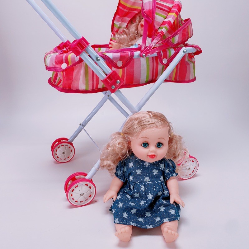 Mẹ & Bé > Đồ chơi > Búp bê & Thú nhồi bông > Búp bê & Phụ kiện || [Mã 151LSSALE giảm 10k đơn 50k] Xe đẩy búp bê hàng đẹp ( Búp bê có thể khóc cười gọi babamama )
