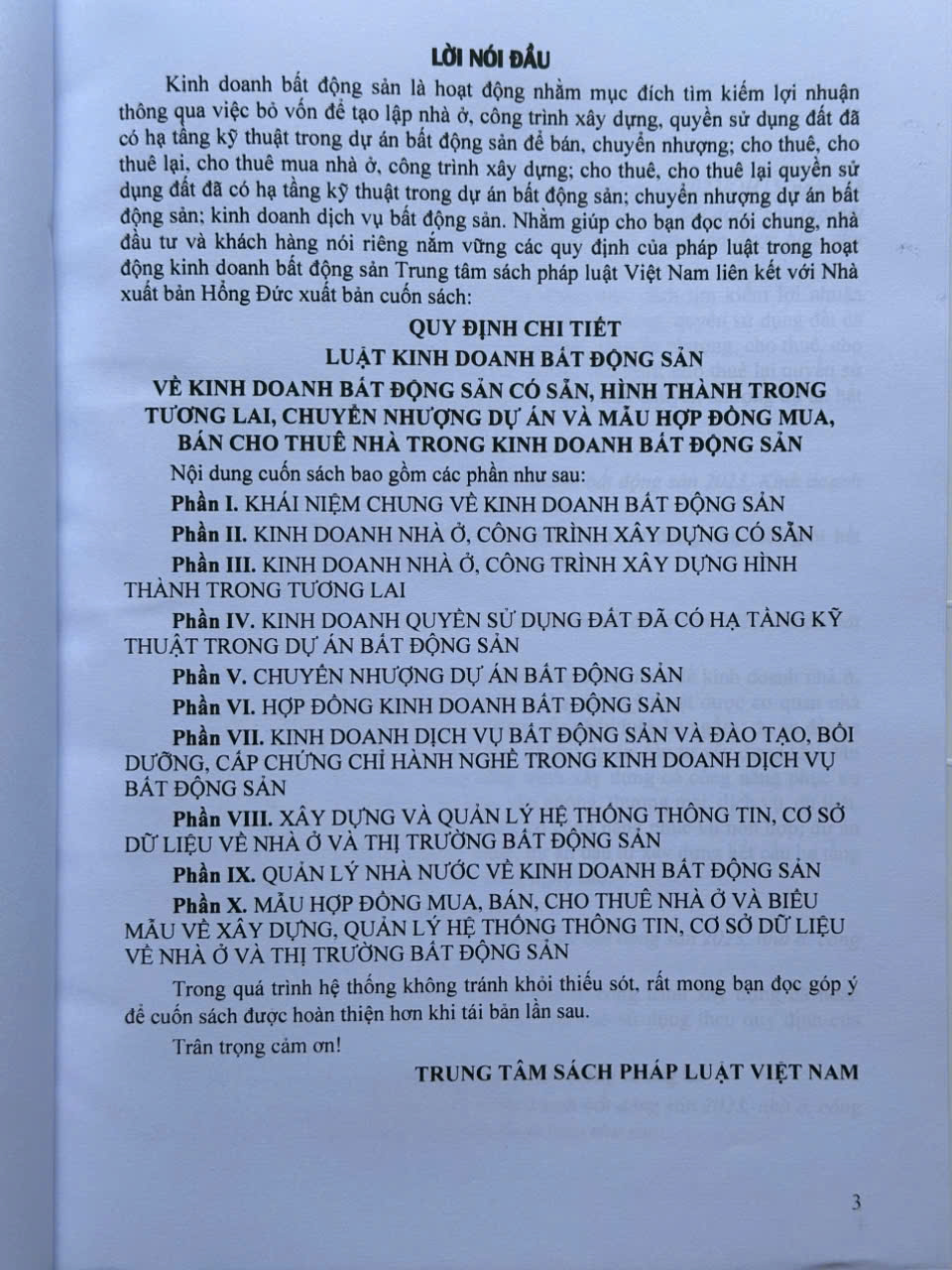 Nhằm phổ biến đến Quý Cơ quan, Đơn vị và Quý khách hàng thân thiết nắm bắt kịp thời những quy định mới nêu trên. Nhà sách Nam Việt xin trân trọng giới thiệu cuốn sách: Quy Định Chi Tiết Luật Kinh Doanh Bất Động Sản Về Kinh Doanh Bất Động Sản Có Sẵn, Hình Thành Trong Tương Lai, Chuyển Nhượng Dự Án Và Mẫu Hợp Đồng Mua, Bán Cho Thuê Nhà Trong Kinh Doanh Bất Động Sản