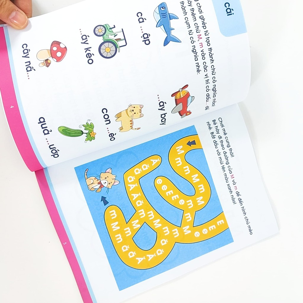 Vở gồm các hoạt động cho bé độ tuổi từ 4-6+ học chữ cái, như: nhận biết và tập viết chữ cái; đọc và đánh vần cùng với nhiều trò chơi trí tuệ, logic hấp dẫn giúp kích hoạt tư duy và phát triển IQ, EQ hiệu quả.