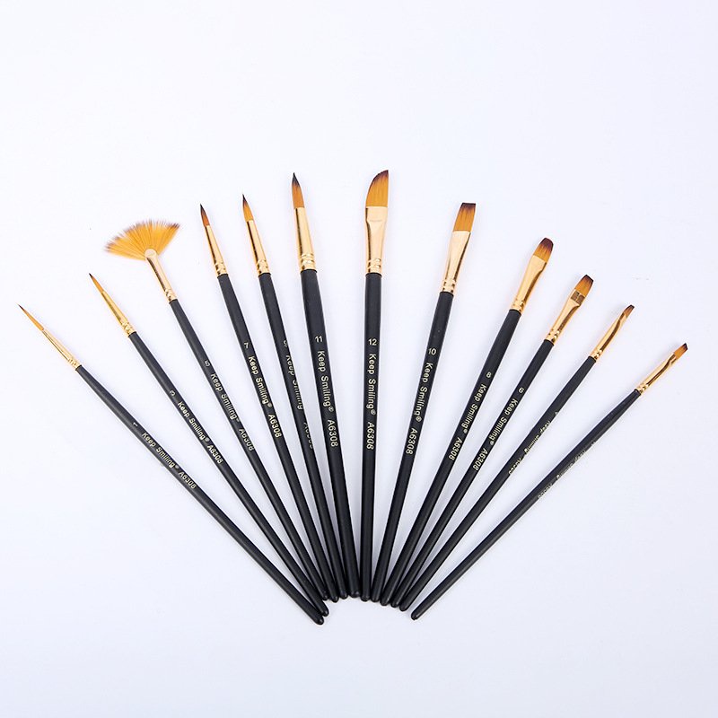 Giới thiệu [SALE] Bộ 12 Cọ vẽ màu nước tranh sơn dầu tranh số hóa màu acrylic 3D hóa trang chuyên nghiệp