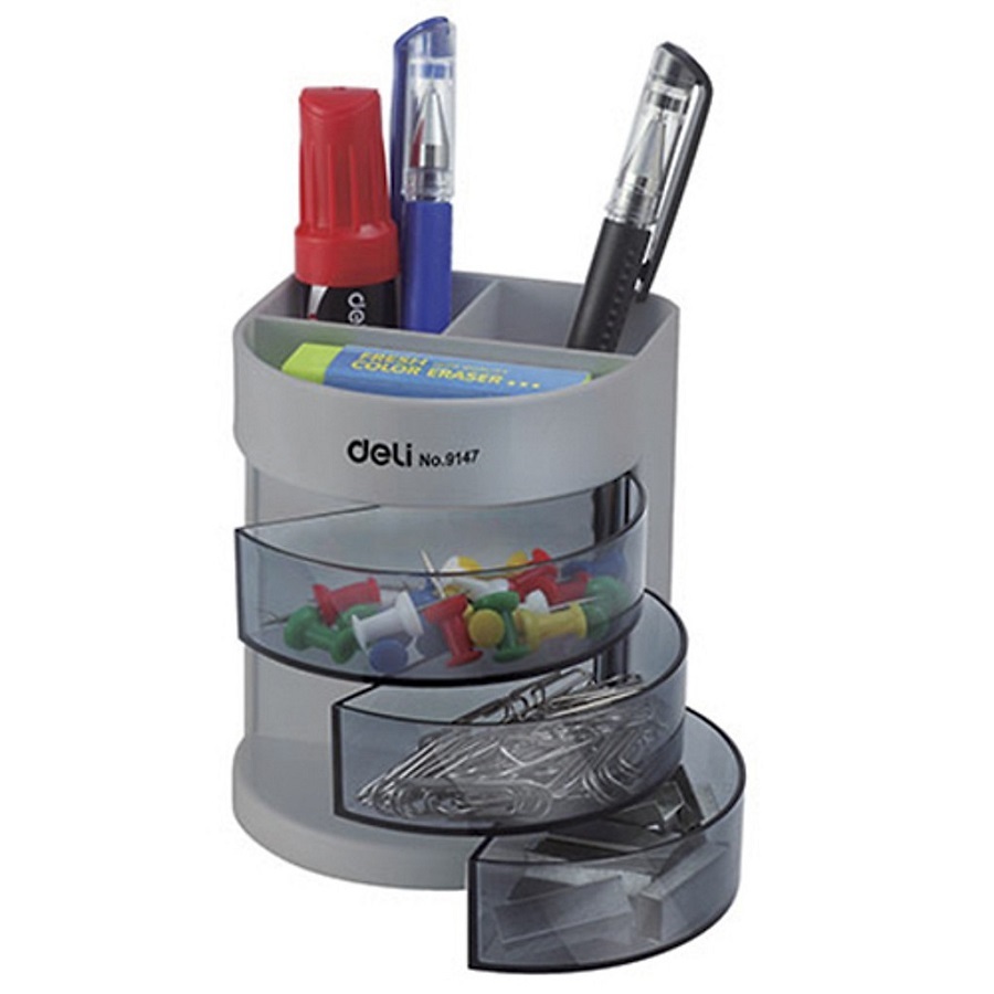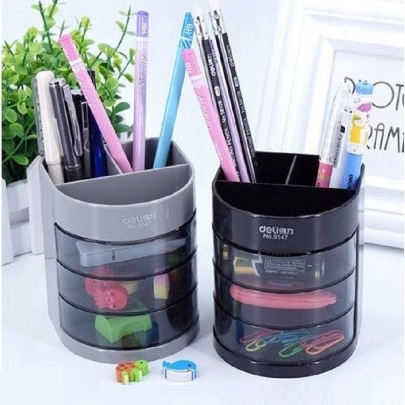 - Khay cắm bút 4 tầng xoay Deli 9147 là dòng sản phẩm cắm bút đa năng hiện đại