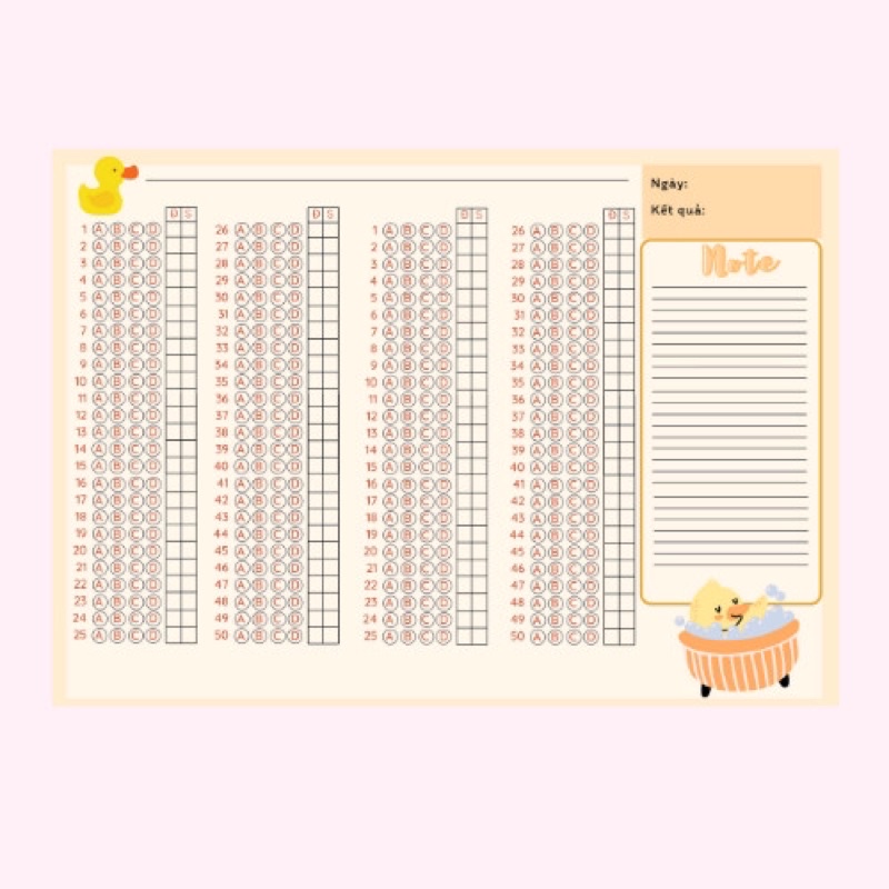 Các mẫu giấy được thiết kế trả lời 100 câu hỏi, bạn có thể tận dụng cho 2 lần sử dụng, tạo cảm giác đỡ buồn chán mỗi khi luyện tập các bài tập trắc nghiệm để bước vào kỳ thì thật quan trọng nhaaaaaaaaa.