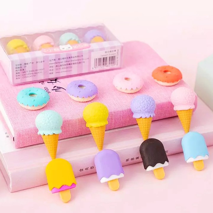 Set hộp 4 gôm tẩy sáng tạo phong cách Hàn Quốc họa tiết ngộ nghĩnh đáng yêu đủ màu sắc phù hợp làm hộp quà tặng cho bé yêu, chắc hẳn đây sẽ là món quà làm bé vô cùng thích thú!