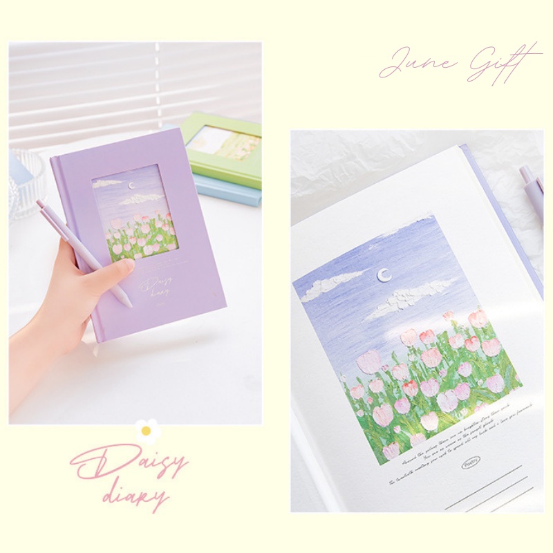 Rosy Posy là một trong những hãng sổ nổi tiếng với các mẫu thiết kế đẹp thơ mộng, series Flower Diary này cũng đảm bảo sẽ không khiến bạn thất vọng. Sổ gồm 4 màu pastel: hồng, xanh lá, tím, xanh da trời, mỗi một quyển là một bức tranh phong cảnh xinh đẹp giúp bạn có động lực ghi chép và học hành tốt hơn.