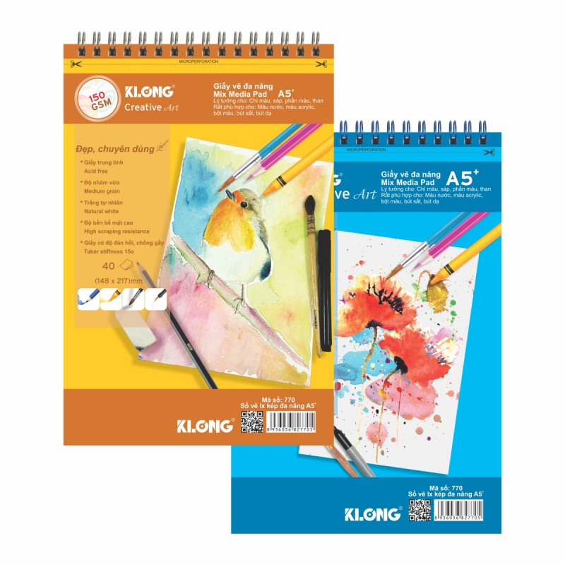 Giới thiệu Sổ vẽ lò xo đa năng Creative Art 150 GSM 40 tờ khổ A5 Klong 770