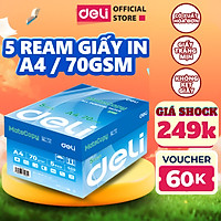 Thùng 5 Ream Giấy A4 Deli Giấy In Photo Copy 70gsm Chính Hãng Loại Dày Ream 500 Tờ Chống Lóa Giấy Mắt
