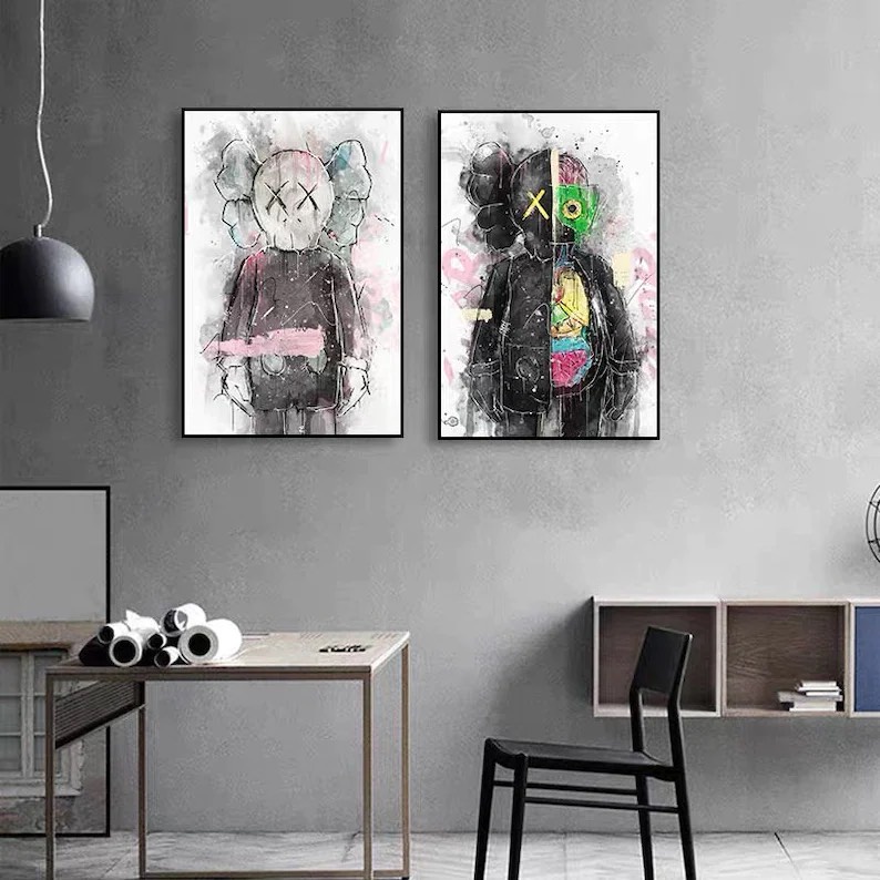 Giới thiệu Tranh Canvas tràn viền treo tường phòng khách, tranh hiện đại, tranh Kaws, Bearbrick KAWS 146-148