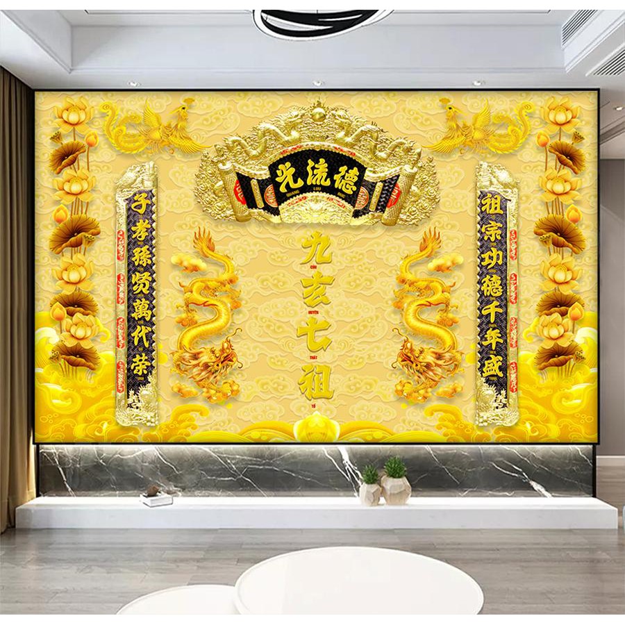 Tranh dán tường VTC Trang trí bàn thờ cửu huyền thất tổ UD1029