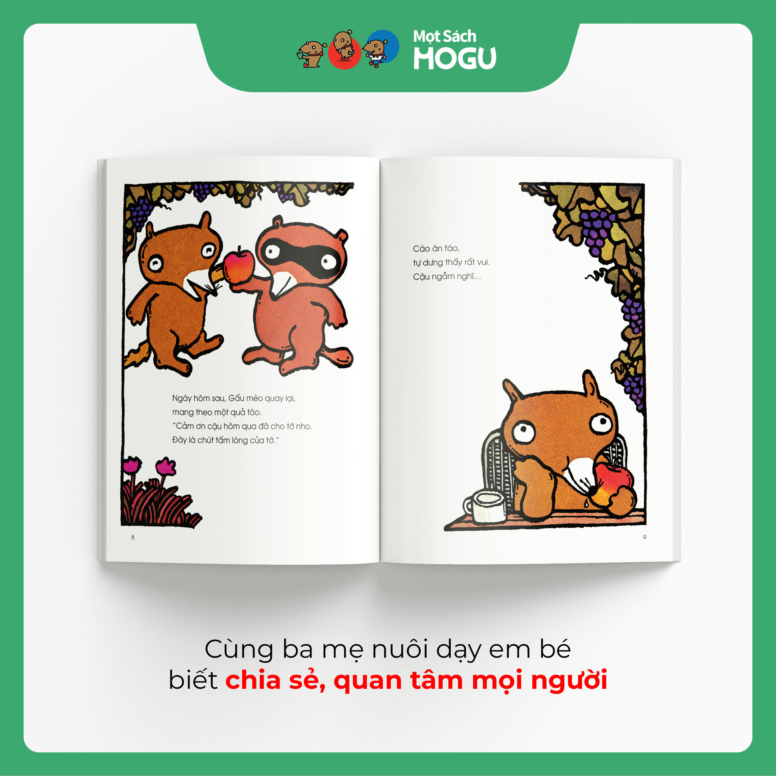 Từ những chùm nho của bạn Cáo, khu rừng nhỏ bỗng trở nên náo nhiệt với sự xuất hiện lần lượt “Cá của Gấu”, “Dâu tây của Thỏ”, “Chuối của Khỉ”,... Các bạn đổi cho nhau những thứ mình có và nhận lại những thứ mình thích. Một câu chuyện dung dị mà sâu sắc – gieo mầm tư duy về kinh tế học ngay từ những năm tháng đầu đời.
