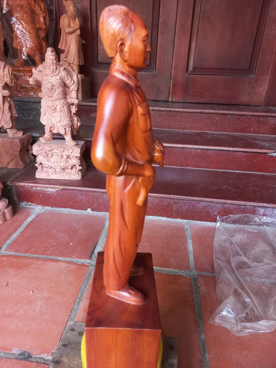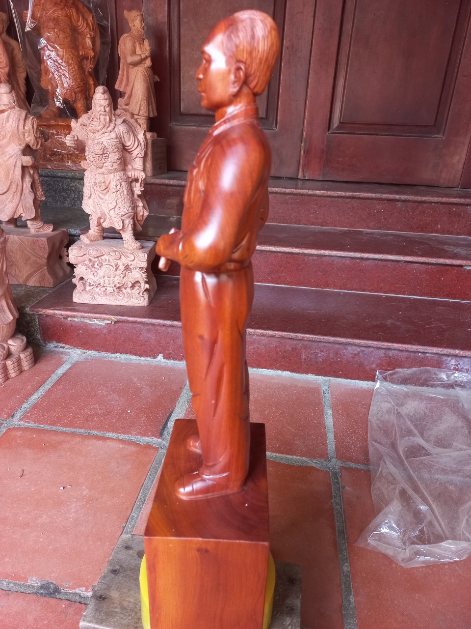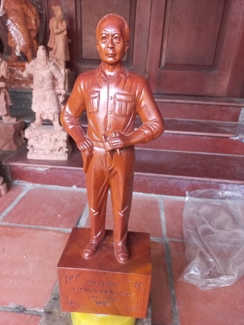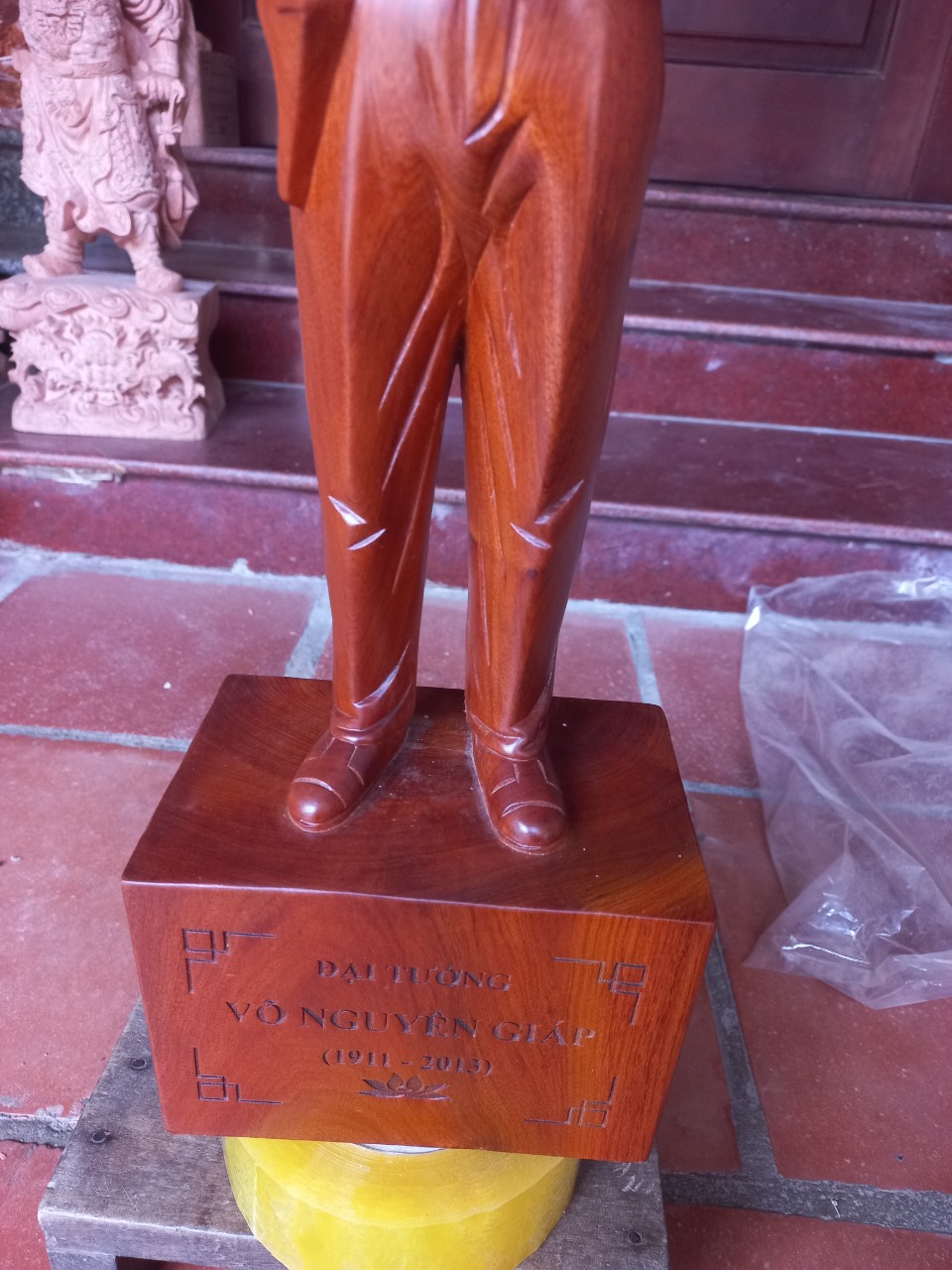 _ Tượng đại tướng võ nguyên giáp được làm bằng chất liệu gỗ hương đá tư nhiên 100%