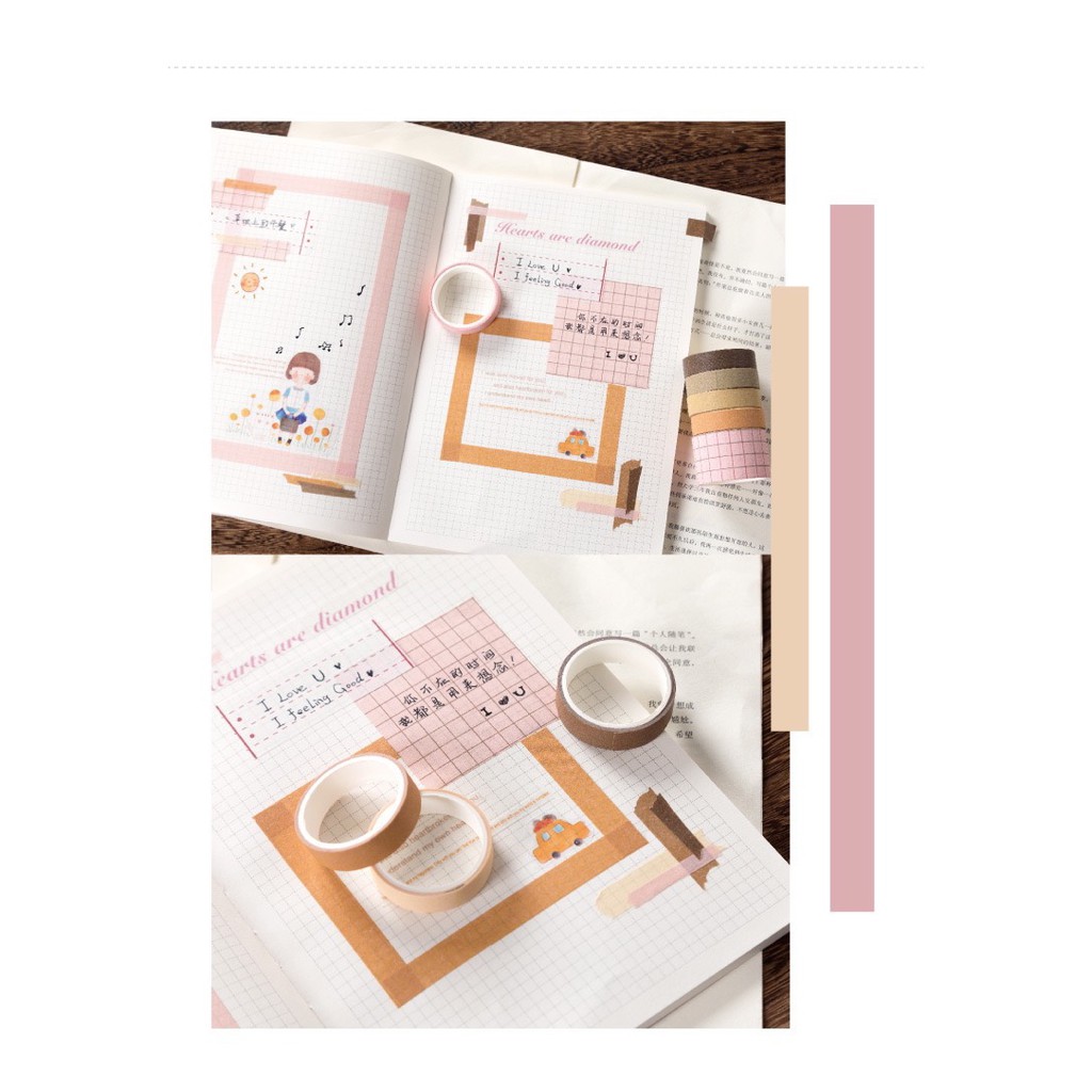 Văn Phòng Phẩm > Thiết Bị Trường Học > Dây & Băng Keo Dán || Washi Tape Vintage Trang Trí Bullet Journal Set 10 Cuộn